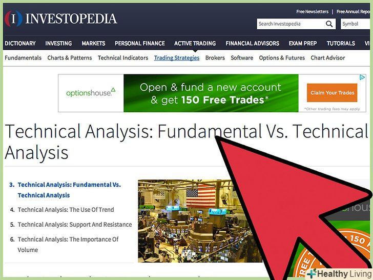 Вивчіть методи фундаментального і технічного аналізу ринку.існують дві основні моделі розуміння фондового ринку та прогнозування зміни цін. Використовувана вами модель визначить метод прийняття рішень щодо того, які акції купувати і коли їх купувати і продавати.[17]- При фундаментальному аналізі рішення про компанію приймаються на основі того, чим вона займається, який характер її діяльності, репутація, хто нею керує. При такому аналізі намагаються оцінити реальну вартість компанії, а через неї — біржову.