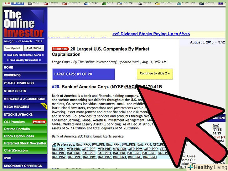 Виберіть надійні акції. у вас є безліч варіантів, але, в кінцевому рахунку, вам слід купити акції компаній, що займають лідируючі позиції у своїй ніші, які пропонують те, що людям постійно потрібно, і мають позитивну модель бізнесу та історію успіху. [6]- Щоб оцінити, наскільки прибутковими є компанії, перегляньте опубліковані ними фінансові звіти. Акції більш прибуткової компанії зазвичай також будуть більш прибутковими. Повну фінансову інформацію можна знайти на сайті компанії в розділі звітності.[7]
