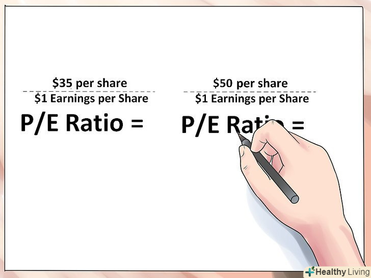 Запам'ятайте формулу.Формула розрахунку P / E проста: ринкова вартість однієї акції ділиться на дохід по ній.- Ринкова вартість акції - це її ціна на відкритому ринку акцій. Наприклад, 23 серпня 2013 р.ринкова ціна акції «Facebook» становила 40,55 доларів.[2]