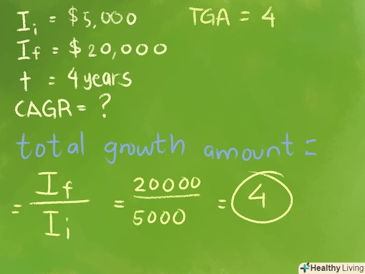 Розділіть поточну вартість капіталовкладень на їх первісну вартість.в даному прикладі ділимо 20000 на 5000. ПРИВАТНЕ дорівнюватиме 4. Це загальний приріст.