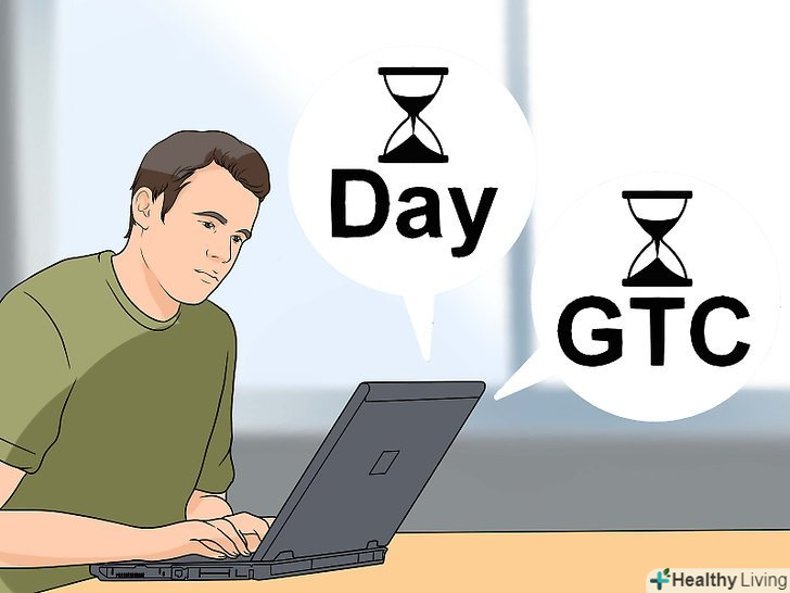 Вкажіть, чи потрібен вам денний або GTC (Good Till Cancel-діє до скасування) відкладений ордер.ковзний стоп-лосс ордер може бути денним або відкладеним. Різниця полягає в тривалості дії ковзного стоп-лосс ордера.- Денний ордер - це ордер на купівлю або продаж цінного паперу / активу, який виконується або автоматично анулюється в межах одного торгового дня. Якщо ви розмістите денний ордер, коли ринок закритий, він триватиме до закриття наступного дня торгів.[9]