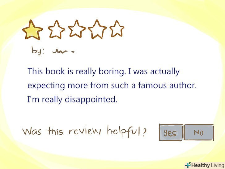 Звертайте увагу на необгрунтовані відгуки.іноді, відгуки можуть бути нічим не обгрунтовані і залишені людиною, яка не прочитав або не купив дану книгу або товар. Дотримуючись певної мети, вони можуть проставити кількість зірочок і говорити про те, що не стосується суті даного товару. Постарайтеся не звертати уваги на відгуки подібного роду.
