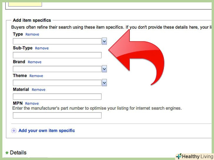 - Виберіть шаблон вставки. eBay пропонує кілька стандартних фраз у кожному розділі, щоб допомогти вам продати свій товар.[1]