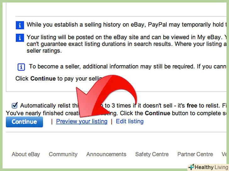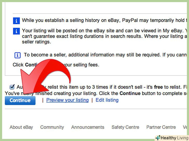 Погодьтеся з умовами продажу на сайті.зверніть особливу увагу на розділи "Listing Conditions", тому що вони розкажуть вам, як включити товар в список законним шляхом. Переконайтеся, що зможете надрукувати маркування доставки і деталі доставки для того, щоб успішно продавати на eBay.