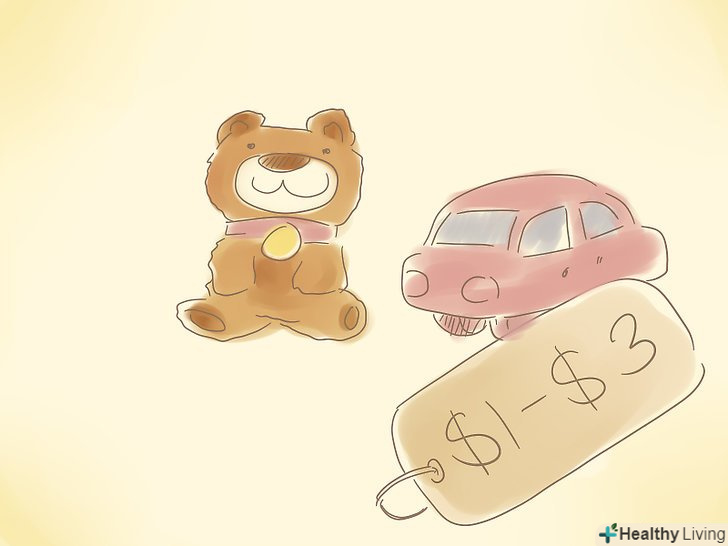 Оцінюйте іграшки в 1-3 долари.ви також можете зробити коробку з безкоштовними і найменш дорогими речами. Таким чином, діти, які приходять на дворовий розпродаж зможуть взяти що-небудь додому. Можливо, їхні батьки теж що-небудь куплять в такому випадку.