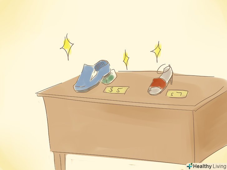 Оцінюйте взуття від 5 до 7 доларів.Будьте впевнені, що взуття відполірована, без подряпин і зношених ділянок, перш ніж виставляти її на продаж. Якщо у вас є пара дуже акуратно поношеного брендового взуття, ви можете оцінити її на кілька доларів вище.- Старі тенісні туфлі повинні бути оцінені нижче запропонованої Суми або ви навіть можете віддати їх безкоштовно.