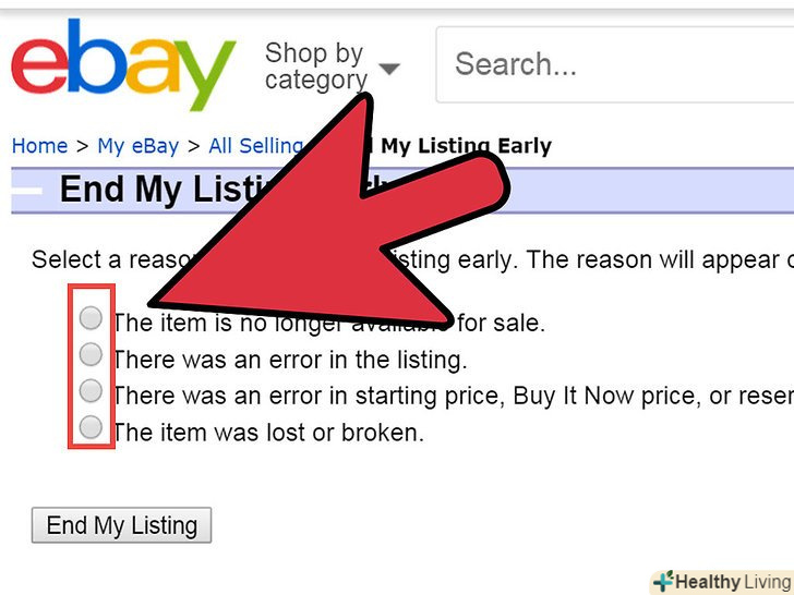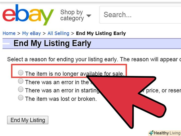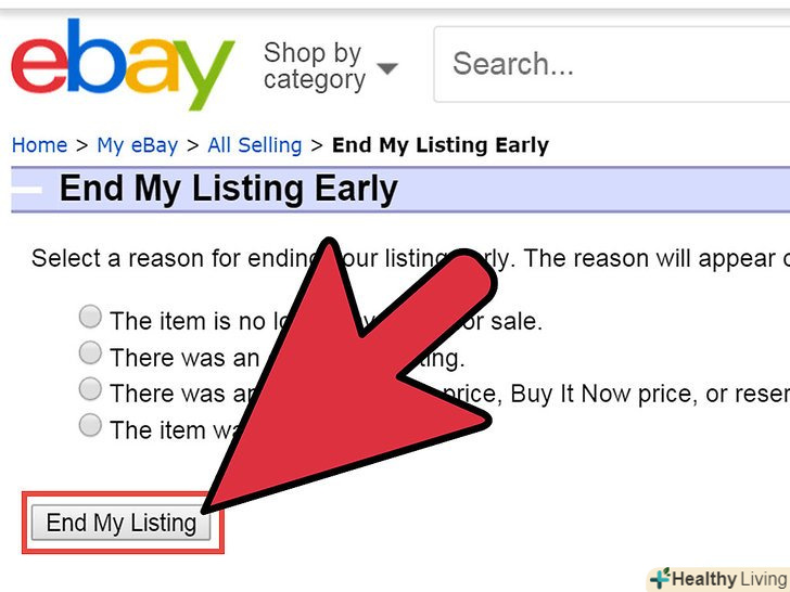 Клікніть на " End my listing." Ваш товар буде офіційно прибраний зі списку продажів і більше ніколи не буде продаватися на eBay в такому вигляді. [1]