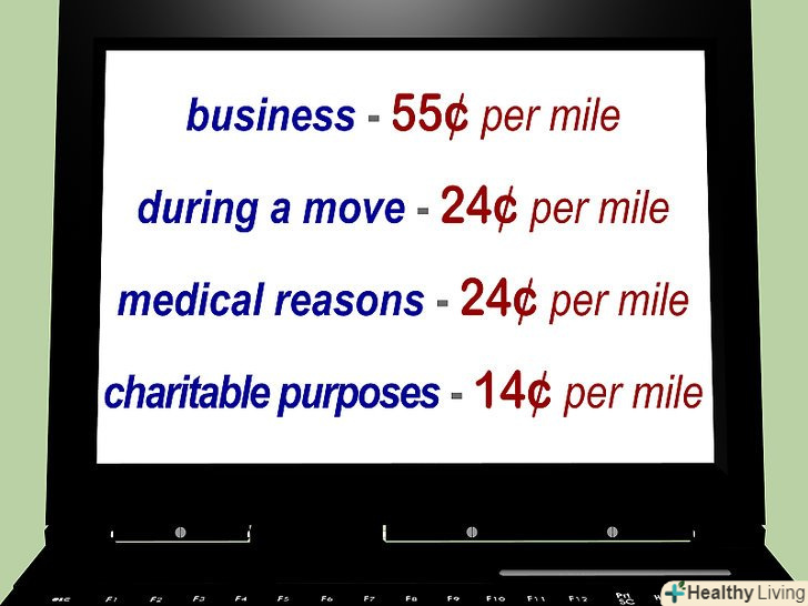 - Скачайте в Інтернеті таблицю приблизної вартості пробігу-це допоможе вам з розрахунками. Зазвичай ці таблиці охоплюють чотири категорії: бізнес, медицина, благодійність і побутові поїздки. Ви можете підлаштувати таблицю під себе, викресливши зайві категорії.