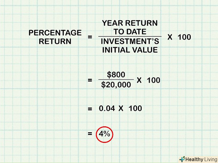 - Це число помножте на 100, щоб обчислити прибутковість, виражену у відсотках: 100 * 0,04 = 4%.[11]