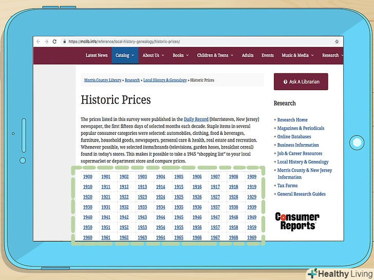 Вивчіть Історичні дані про вартість товару.у деяких випадках просто неможливо самостійно згадати колишню вартість товару. Наприклад, коли потрібно розрахувати приріст вартості по відношенню до дуже давнього її значенням або коли розрахунок потрібен для такого товару, який ви ніколи не купували, необхідно буде отримати Історичні дані про вартість з інших джерел. Те ж саме стосується розрахунків для різних вартісних показників (а не конкретних товарів), наприклад, для індексу споживчих цін, середніх споживчих цін в Росії і купівельної спроможності російського рубля.[2]- У цих випадках вам буде потрібно провести самостійний збір інформації в Інтернеті, щоб дізнатися колишні значення вартості (або показників). Спробуйте задати пошуковий запит за назвою товару, що цікавить Вас році і слову "ціна" або "вартість", щоб знайти необхідні дані по цікавить Вас періоду.