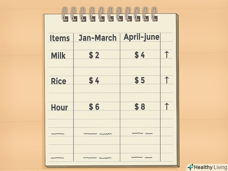 Розрахуйте збільшення своїх особистих витрат.результати розрахунків по збільшенню вартості товарів можна використовувати для обчислення зростання витрат. Крім того, можна стежити за зміною вартісних показників з плином часу і дивитися, ціни на які товари ростуть швидше або повільніше інших. Після цього можна зіставити приріст цін на товари із зростанням (або зменшенням) своїх доходів, щоб підняти, наскільки адекватне зростання вашої зарплати поточної вартості життя.[8]