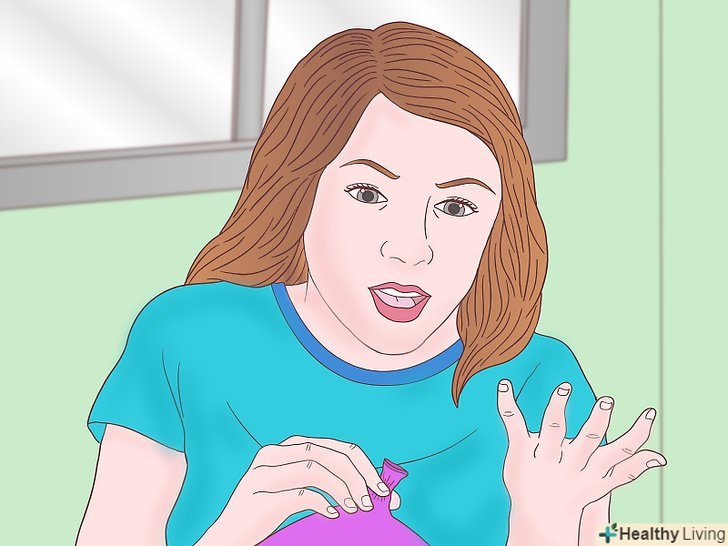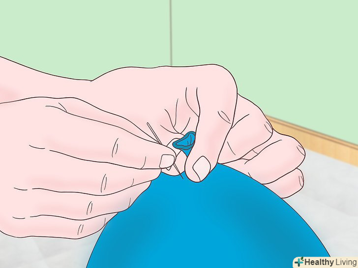 Візьміть кульку в руки.якщо він вже наповнений гелієм, але ще не зав'язаний, тоді просто затисніть отвір вказівним і великим пальцями. Щільно стискайте пальці, щоб гелій не виходив з кульки.- Якщо кулька наповнений гелієм і зав'язаний, то потрібно зробити невеликий прокол для виходу гелію. Утримуйте кульку за вузол.