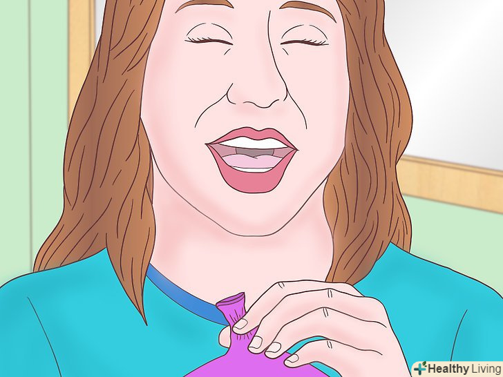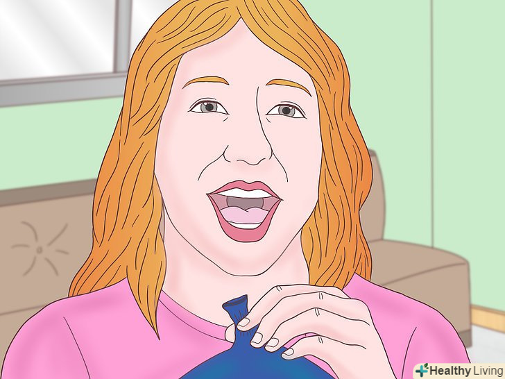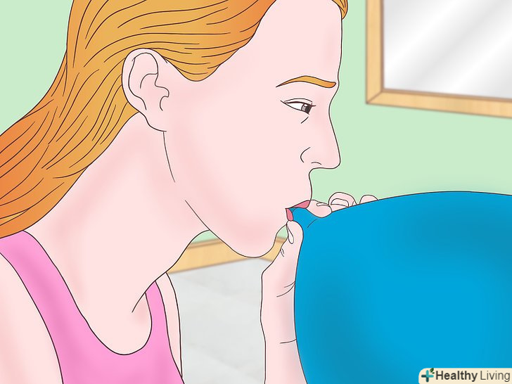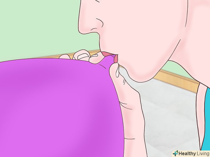 Вдихніть гелій.коли будете готові, розтисніть пальці навколо отвору, щоб випустити газ назовні. Піднесіть кульку до рота і зробіть глибокий вдих (2-3 секунд буде цілком достатньо).[1]- Якщо вам довелося проколоти отвір, то приберіть палець і піднесіть кульку до рота. Глибоко вдихніть, щоб наповнити легені гелієм. Робіть все так само, як якщо б вдихали повітря.