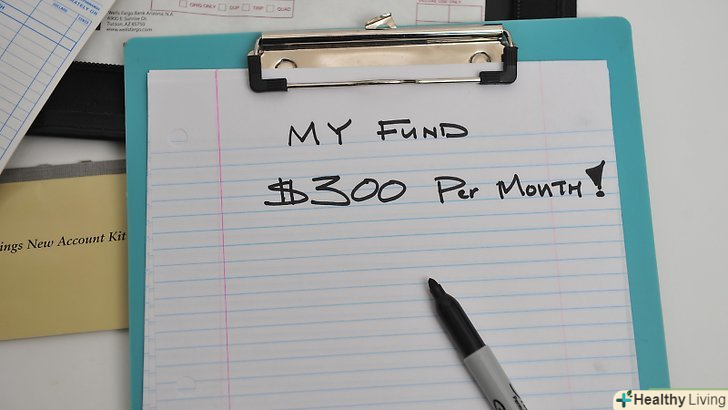 Вирішіть, яку суму ви хочете класти на рахунок і як часто.наприклад, ви можете відкладати $300 на місяць або $150 із зарплати. Це залежить від ваших намірів. Наприклад, якщо ви хочете за 36 місяців назбирати гроші на перший внесок у розмірі $20,000 за покупку будинку в кредит, вам знадобиться щомісяця відкладати близько $550.