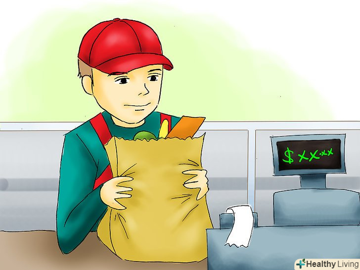 Робіть покупки з розумом.ви вже живете самостійно, так що вам потрібно самому купувати собі їжу, шкарпетки і туалетний папір. Зверніть увагу на недорогі, не розкручені бренди, які пропонують ту ж якість за менші гроші. Якщо ви купуєте швидкопсувні продукти, наприклад фрукти і овочі, з'їдайте їх до того, як вони встигнуть зіпсуватися. Перед походом в магазин складіть список необхідного на тиждень відповідно до свого бюджету і намагайтеся не відхилятися від нього в процесі покупок.[8]