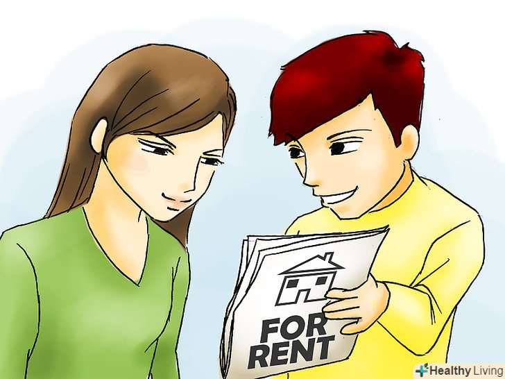Підшукайте житло.якщо ви знайшли сусіда, який вже знімає квартиру, можете пропустити цей крок. Якщо ж ні, тоді почніть спільні пошуки квартири / будинку. Швидше за все, вам обом доведеться підписати договір оренди.- Обдзвоните Житлові комплекси вашого міста і трохи пораспрашивайте. Скільки коштує оренда? Які комунальні послуги включені у вартість? Квартири здаються разом з меблями? Ці питання нададуть вам необхідну інформацію, щоб прийняти рішення.