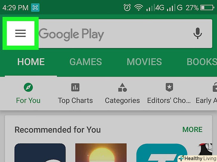 Пройдіть за цією адресою в браузері: https://play.google.com. для цього можна скористатися будь-яким браузером на смартфоні або комп'ютері. В результаті ви опинитеся на головній сторінці Google Play.- Якщо ви не ввійшли в обліковий запис автоматично, натисніть на кнопкуУвійти в правому верхньому куті і увійдіть в свій обліковий запис, ввівши адресу електронної пошти та пароль.