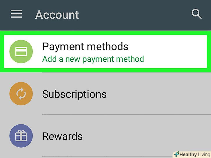 ТоркнітьсяСпосіб оплати.ця опція знаходиться в самому верху меню "Аккаунт", поруч із зеленою іконкою у вигляді кредитної картки. Баланс коштів буде вказано в самому верху меню, поруч з фразою»Баланс Google Play".[1]