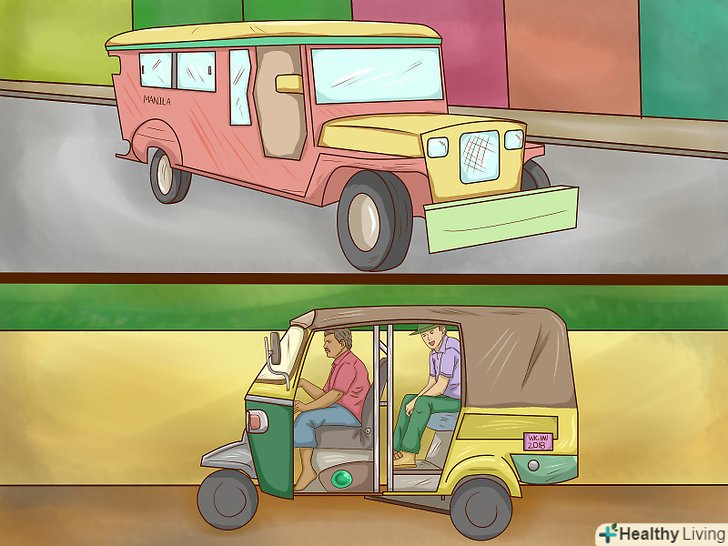 Врахуйте витрати на пересування на місцевому транспорті.Добравшись до обраного місця, вам потрібно буде переміщатися, але вже на місцевому транспорті. Багато мандрівники беруть таксі, користуються каршерінговимі сервісами, беруть напрокат автомобілі, користуються метро або автобусами. Якщо ви можете собі дозволити, то, ймовірно, найзручніше буде орендувати автомобіль.[4]- Щоб дізнатися ціни і розклад місцевого транспорту, вам доведеться скористатися відповідними місцевими сайтами або пошуковою системою Google.