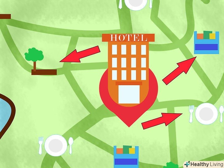 Врахуйте витрати на проживання.у будь-якій подорожі, як правило, істотна частина витрат припадає на проживання. Варіанти проживання можуть істотно відрізнятися за вартістю і якістю, тому обов'язково враховуйте свої потреби і можливості. Якщо ви відправляєтеся в популярне у туристів місце, то напевно знайдете великий вибір готелів, готелів, курортів і хостелів.[5]- Вибирайте готелі, розташовані недалеко від цікавих вам пам'яток. Такі варіанти проживання найбільш зручні і економлять значну кількість коштів і часу на транспорт.