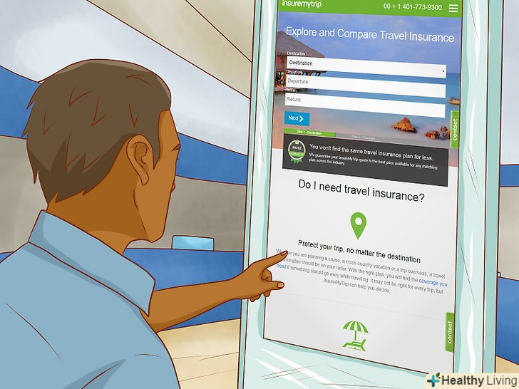 Врахуйте витрати на страховку.Страховки для подорожуючих часто захищають від значних непередбачених витрат, включаючи медичні витрати, втрату багажу, крадіжки або аварії. Страховку для подорожуючих можна придбати в Інтернеті, а також прямо в аеропорту.[10]- Придбати страховку в інтернеті можна на сайтах таких компаній, як TripInsurance, «Альфа-Страхування», «Ресо» і «згода». придбати страховку в подорож також можна і у звичайних страхових компаній, наприклад, «Інгосстрах» і Allianz. Якщо у вас вже оформлена страховка автомобіля, життя або майна, то, можливо, ваша компанія надасть вам знижку при покупці страховки подорожуючим.[11]