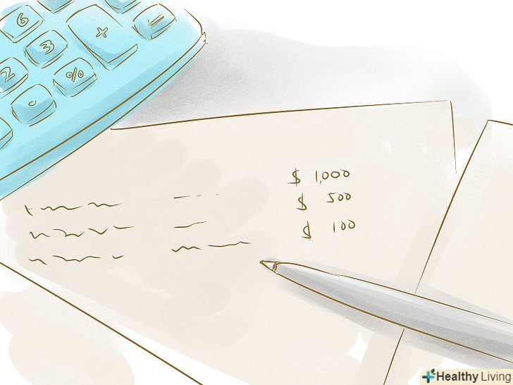 Подивіться, яку суму готівки ви в останній раз знімали з карти.Покопайтеся в чеках з банкоматів і банківських виписках, щоб зрозуміти, скільки грошей ви зазвичай знімаєте в місяць. Підрахуйте, скільки з цих грошей було витрачено на необхідне і скільки на бажане.- Якщо у вас збереглися всі ваші чеки за останній місяць, перегляньте їх і підрахуйте, скільки ви витратили на те, що вам було необхідно - на бензин, їжу та інше. Відніміть цю суму з суми, яку ви в цілому зняли з рахунку за місяць, щоб отримати суму, яка була витрачена на бажані речі-нову відеогру, сумку відомого бренду і так далі.