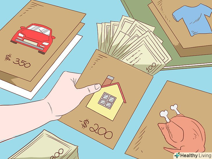 Заздалегідь визначте собі ту суму грошей, які ви можете витратити, якщо у вас виникають проблеми з економією.якщо з фінансами туго, один з кращих способів захистити себе від зайвих витрат — на самому початку місяця відкласти готівкою ті кошти, які вам можна витратити. Поділіть їх на конверти: для продуктів харчування, для бензину, орендної плати і так далі, щоб Ви точно знали, скільки у вас є. Залишайте дебетові та кредитні картки вдома. Адже так легко розплатитися карткою, особливо не замислюючись про вартість покупки. Коли при покупці несуттєвих речей вам доводиться вручну відраховувати ті ж суми готівкою, ймовірність пригальмувати себе стає вище.[7]