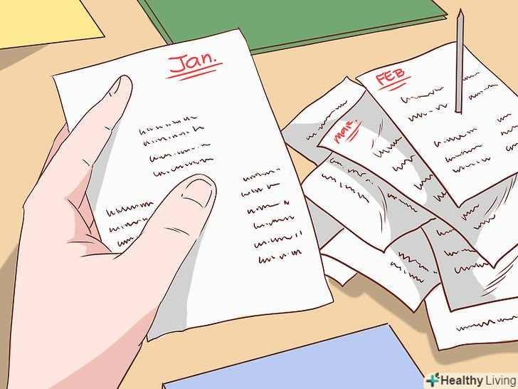 Щомісяця відстежуйте власні витрати.Зберігайте всі чеки, щоб отримати точну картину власних витрат. На щастя, сучасні технології помітно полегшують це завдання, так як завжди можна зайти в мережу і подивитися детальну інформацію по своєму картковому рахунку. Багато банків самі класифікують ваші покупки по карті на такі групи, як" продукти"," бензин"," комунальні платежі " і так далі.- Якщо ж ви розплачуєтеся готівкою, зберігайте чеки і відзначайте те, що Ви купили.