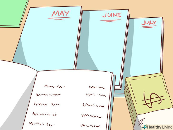 Ведіть облік доходів і витрат щомісяця.не можна скласти списки доходів і витрат лише один раз і отримати при цьому ідеальний бюджет. Для кращого розуміння власної манери витрачати гроші має сенс контролювати витрати постійно, перевіряючи мінімум раз на місяць, як йдуть ваші справи. В цілому, доходи повинні залишатися приблизно постійними, тому вам буде необхідно коригувати саме витрати, якщо ви помітите, що гроші витікають з рук.- Розташуйте списки доходів і витрат пліч-о-пліч, представивши їх в табличному вигляді. Можна скласти електронну таблицю, а можна скористатися звичайним блокнотом. Зіставлення наявних цифр дозволить вам зрозуміти, скільки грошей у вас залишається на подальші витрати.