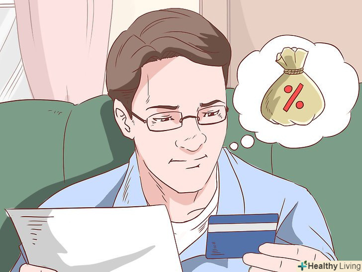 - Обмежте витрати по кредитній картці лише 30-40% кредитного ліміту. Ні в якому разі не наближайтеся до повного вичерпання ліміту, так як часто буває дуже складно погасити таку заборгованість без непомірно високих відсотків.[3]