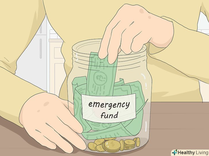 Відкладайте гроші на чорний день.відкрийте собі ощадний рахунок або дебетову карту і відкладайте туди гроші на чорний день та інші форс-мажорні ситуації. Головне, щоб ви могли швидко зняти гроші. Експерти радять відкласти близько 6 ваших місячних зарплат, щоб мати повноцінну фінансову подушку безпеки. Втім, навіть куди менші суми можуть бути невимовно корисні як в разі непередбачених витрат, так і просто для підстраховки від фінансових негараздів.[13]