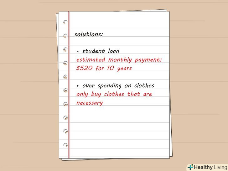 Визначте, в чому корінь проблеми. у разі втрати роботи або втрати грошей через якусь одну окрему помилку все ще більш-менш зрозуміло, проте є і такі люди, які можуть в упор не помічати той факт, що живуть вони абсолютно не за коштами. І якщо ви раптово для себе помітили, що не можете платити за боргами – подумайте, як же ви дійшли до життя такої і на що ви витрачаєте гроші.- Складіть список ваших найсерйозніших фінансових проблем. Звичайно, записувати все і відразу не треба – потрібно постаратися розставити пріоритети (наприклад, «виплата іпотеки» або «пошук роботи»). Повірте, вирішивши серйозні проблеми, ви і самі не помітите, як впораєтеся з дрібними!