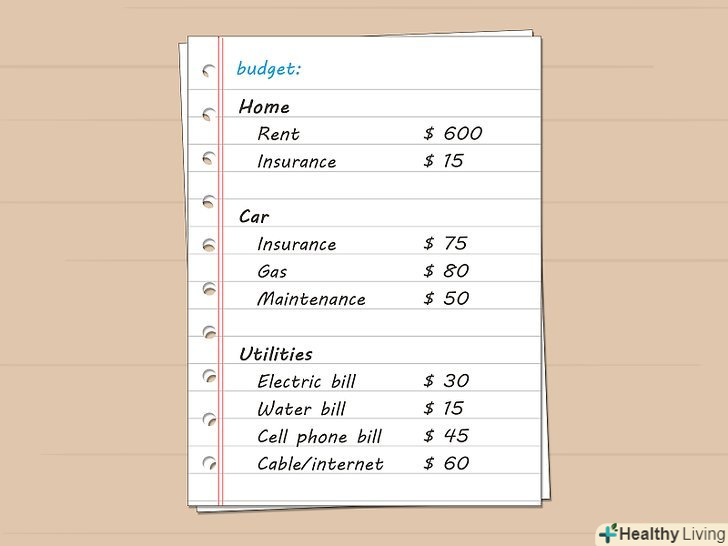 Плануйте бюджет.за допомогою бюджету ви зможете відстежувати свої доходи і витрати, Ви зможете зрозуміти, де заробляєте і на що витрачаєте. Після того як ви з'ясуєте більш-менш точно, куди і на що йдуть протягом місяця ваші гроші, ви зможете зрозуміти, на чому можна заощадити, щоб, відповідно, швидше виплатити борги. Коли вивчіть свої нинішні витрати, складіть бюджет на місяць (на кожен місяць!) і виділіть фіксовані суми для кожної з категорій витрат (Їжа, Розваги, машина і так далі). Зрозуміло, бюджету треба дотримуватися.[3]- Уважно вивчіть свої витрати. Є всі шанси, що десь ви витрачаєте зайве і навіть понад те. Дуже пильно перевірте, на що ви витрачаєте гроші, і спробуйте визначити, де ж ви залишаєте більше грошей, що слід було б. Може, не варто ходити на обідній перерві в те кафе? Може, варто брати з собою їжу з дому? Може, книги краще не купувати, а брати в бібліотеці? Складіть план по зменшенню ваших витрат, щоб скинути зі своїх плечей якомога більшу частину фінансового тягаря.