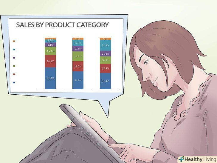 Порівняйте кількість продажів кожного товару і розрахуйте продажі за категоріями до загального числа продажів.- Наприклад: ви продаєте п'ять категорій товарів в цілому. В 1 категорії Ви продаєте 5 товарів в день, у 2 категорії — 3 одиниці в день, а в інших продається лише по 1 одиниці товару. Помножте ціну товару в кожній з категорій на відповідну кількість проданих товарів, щоб дізнатися поточний загальний дохід.