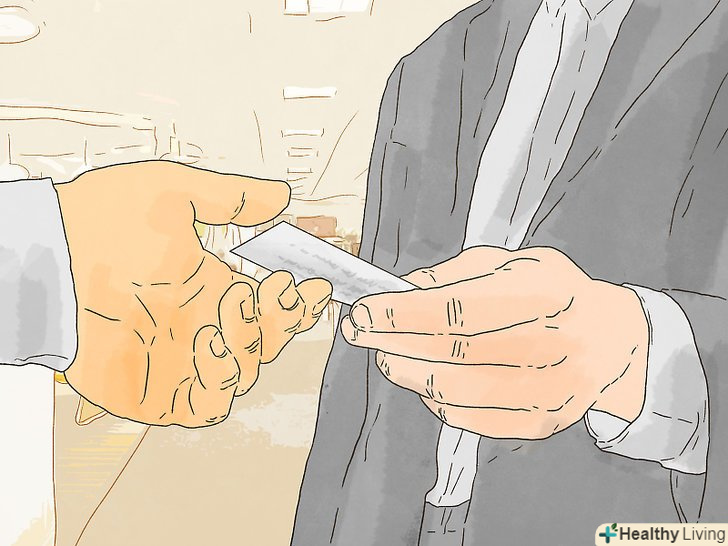 Створюйте безліч професійних зв'язків.щоразу, розмовляючи з кимось, подумайте, чи може ця людина стати вашим професійним контактом. Це може здатися корисливим, але розглядаючи такі зв'язки як професійні, ви також можете допомогти і своєму співрозмовнику. Коли перебуваєте в суспільстві, намагайтеся розмовляти з людьми, з якими зустрічаєтеся, і намагайтеся бути доброзичливим.[22]- Наприклад, якщо ви офіціант, який шукає роботу, ніколи не завадить поговорити з персоналом, коли їсте в ресторані. Працівники закладу можуть дати вам корисні поради з приводу пошуку роботи в цьому районі.