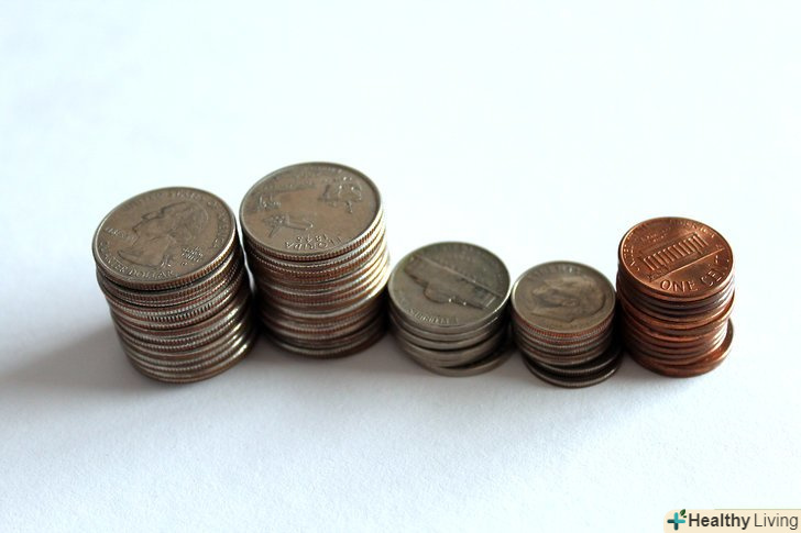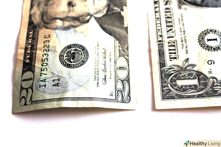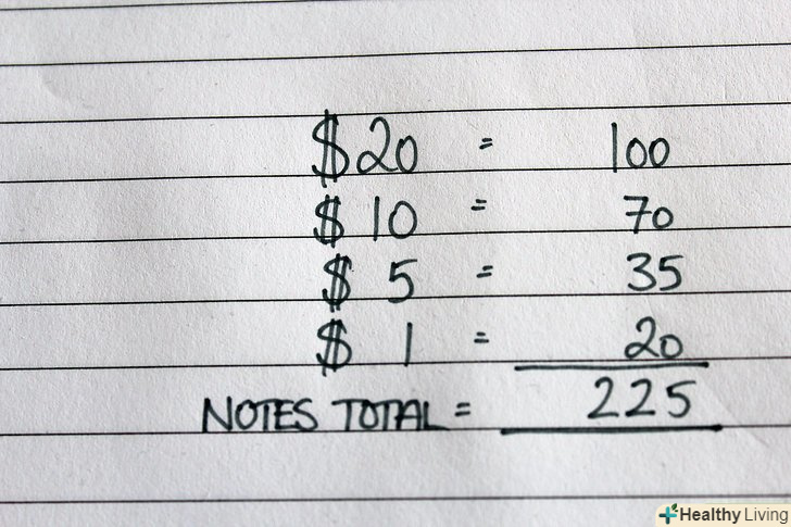 Зберіть всі гроші, що у вас є, на столі.стіл повинен бути досить великим, щоб там помістилося кілька купок грошей. Насамперед розділіть гроші на паперові та металеві. Десятки і п'ятірки можна відразу класти окремо.