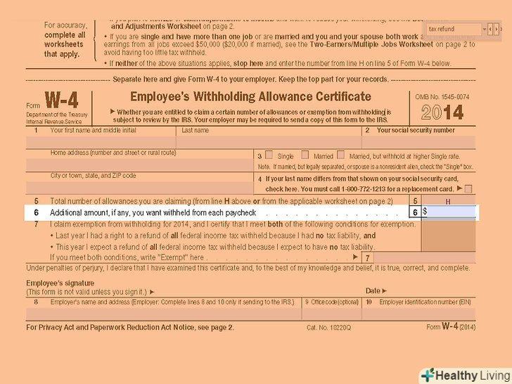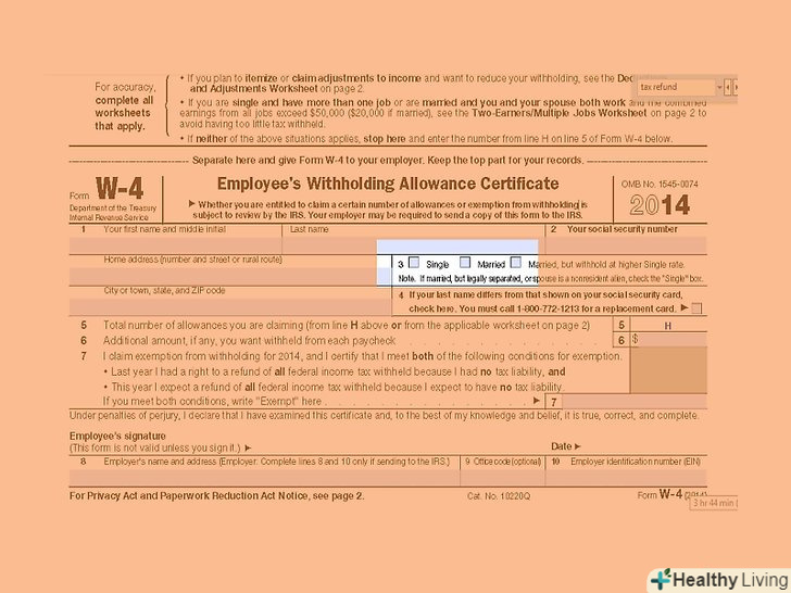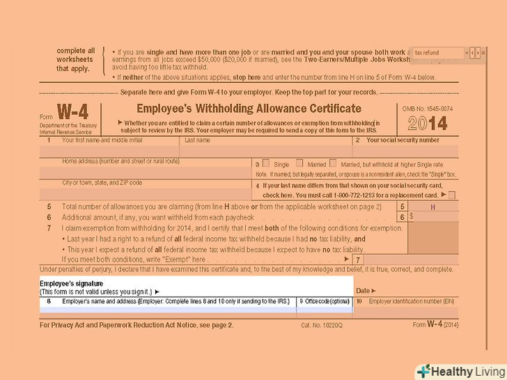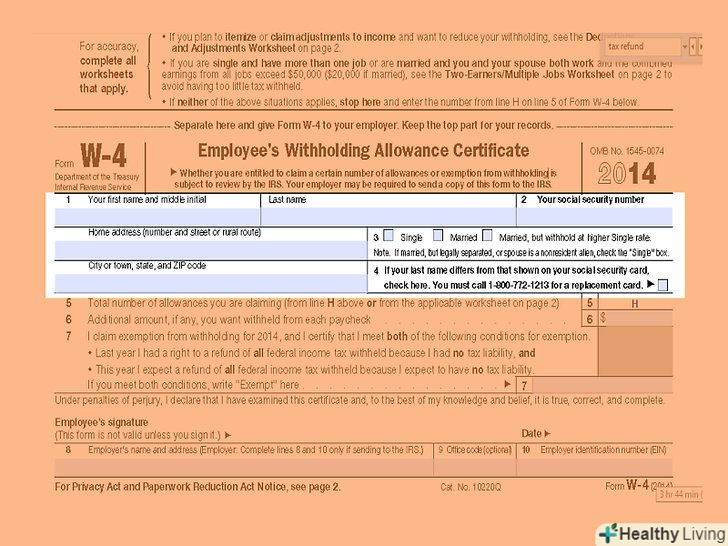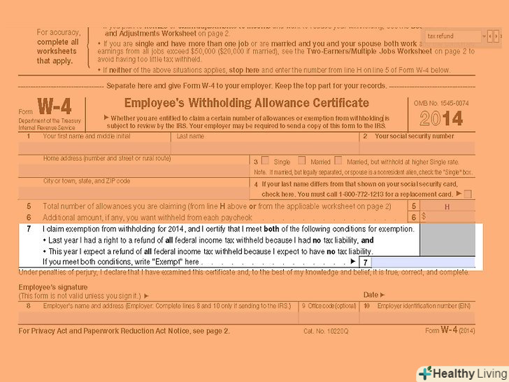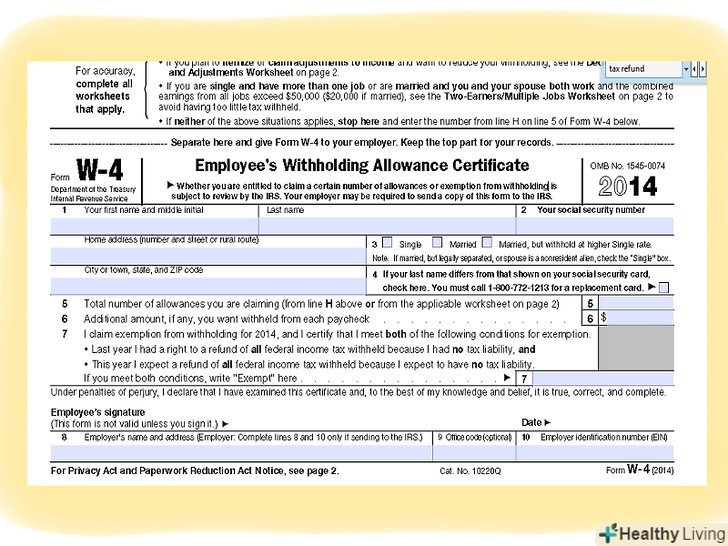 Прочитайте умову про податкові утримання (Exemption Claim).для того, щоб у вас не утримували зайві гроші із зарплати, у вас не повинно бути ніяких боргів перед податковою службою.