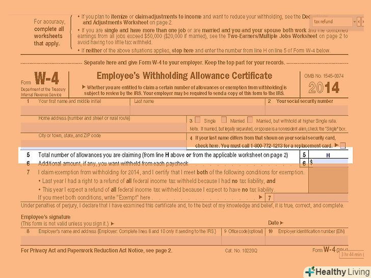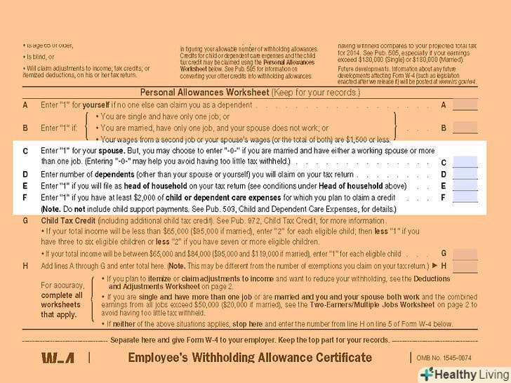 Підрахуйте кількість знижок, заявлених вами, і введіть цю цифру навпроти літери H. ви також повинні поставити цю цифру навпроти цифри 5 у вашій W-4 формі.
