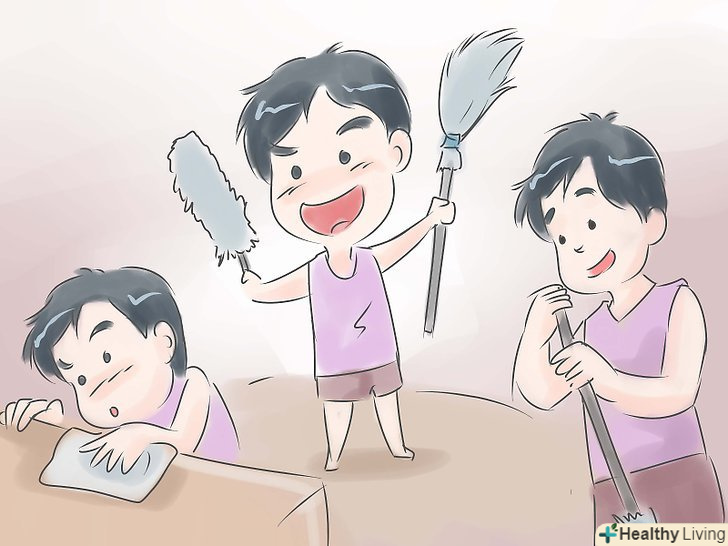 Зробіть прибирання. Так, так, це не так вже й весело. Але якщо ви Один вдома і вам потрібно скоротати якось час, то прибирання є одним з найбільш плідних занять, яким ви можете присвятити себе. До того ж, чистий будинок підніме вам настрій. Поставте перед собою певну мету, наприклад, що ви приберете вашу кімнату за 30 хвилин або що ви приберете весь будинок за наступну годину, а потім швидко приступайте до роботи. Увімкніть гучну, божевільну музику і уявіть, ніби ви герой фільму, який хтось швидко перемотує вперед.