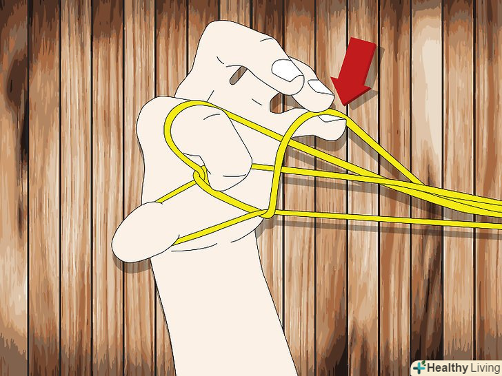 Заведіть великий палець і мізинець всередину мотузки. Три середніх пальця повинні залишитися з зовнішньої сторони кола.