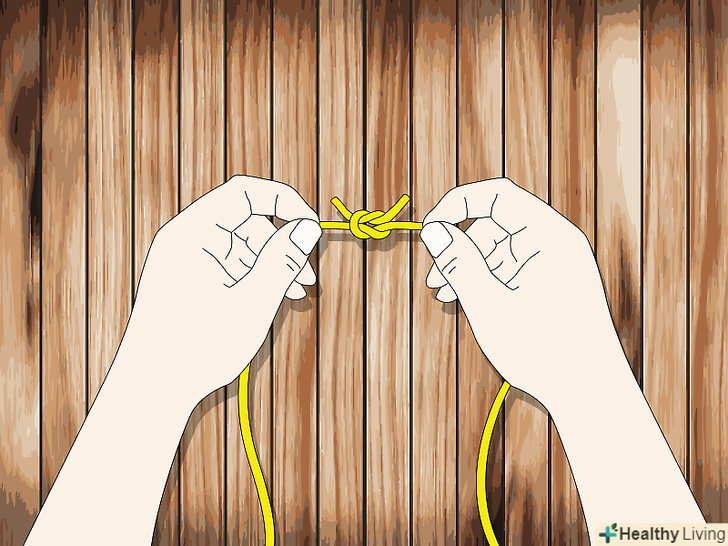 Зв'яжіть мотузку в кільце.щоб вона не розв'язувалася використовуйте квадратний вузол.
