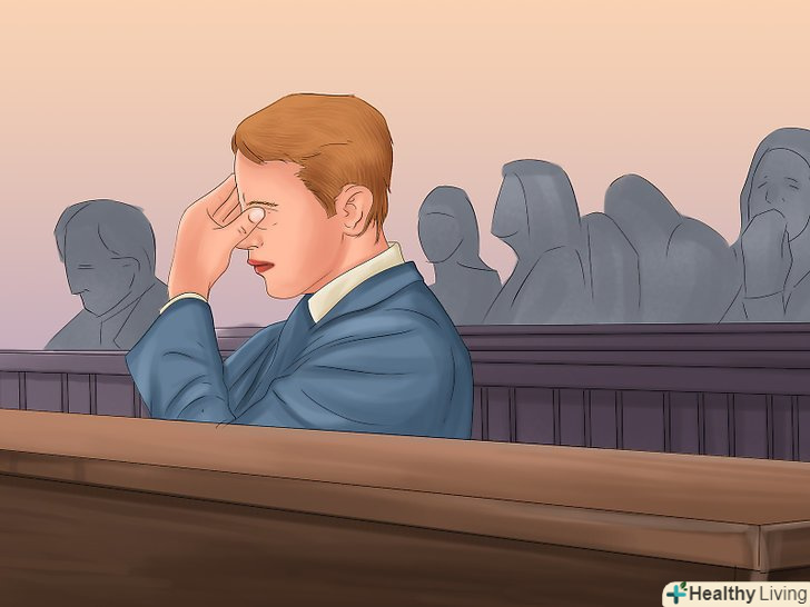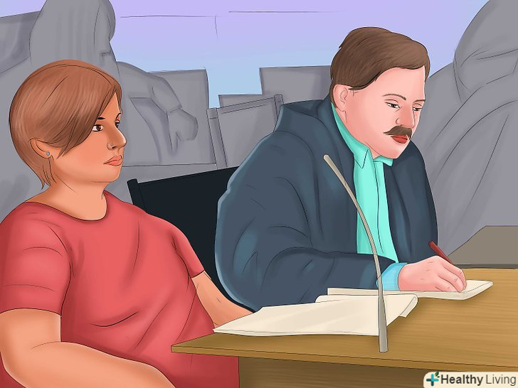 Будьте впевнені в собі.можливо, вас охопив страх, але ви повинні вести себе спокійно і впевнено. Не посміхайтеся і не жартуйте, але все ж стійте прямо і дивіться на присяжних.- Робіть нотатки під час суду. Вам буде чим зайнятися, до того ж вам доведеться звернути увагу на представлені докази. Якщо у вас з'явилася ідея, передайте записку своєму адвокату.