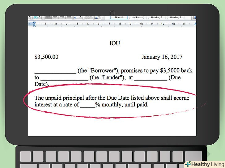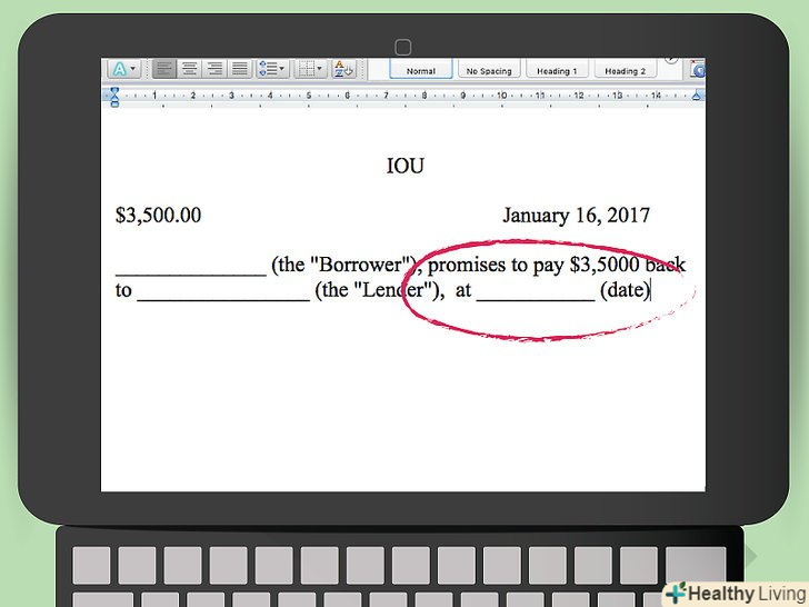Напишіть дату і суму, взяту в борг, або вартість товару або послуги.суть в тому, щоб позначити суму боргу.