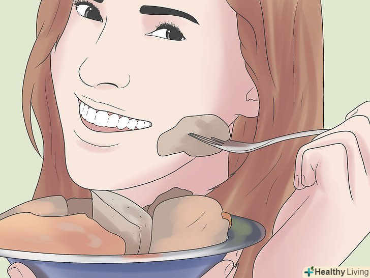 З'їжте щільний корисний сніданок.ми говорили про те, що яйця найкраще їсти перед вечіркою. Те ж саме стосується і післясвяткового обіду. Спробуйте всі методи. З'їжте деруни, млинці або незапечену яєчню. Зараз найкращий час, щоб побалувати свій організм корисними продуктами, навіть якщо їсти зовсім не хочеться.- Якщо у вас немає апетиту, спробуйте з'їсти бутерброд. Можна спокійно з'їсти грінку. Хліб абсорбує алкоголь, і ваш організм швидше впоратися з похміллям.
