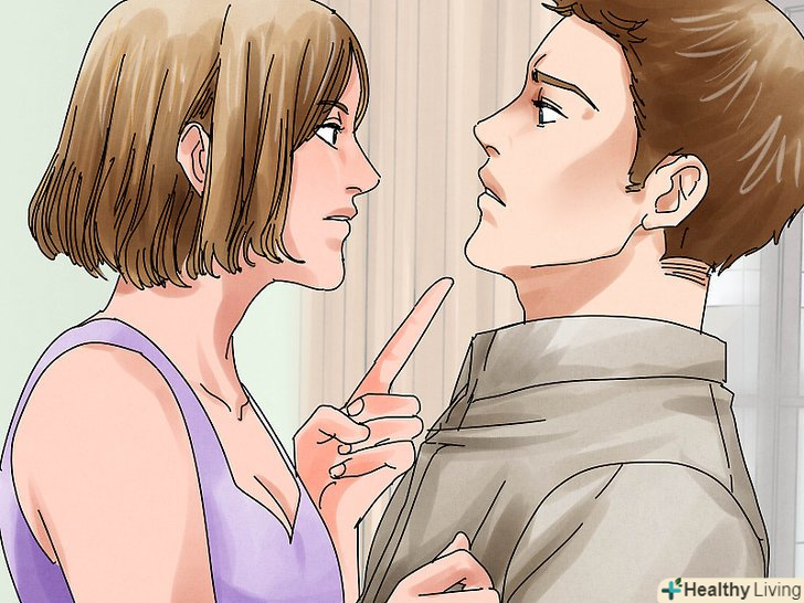 Чи загрожує вам ваша дружина чи дівчина?загрозлива поведінка може бути як ледь вловимим, так і шокуюче очевидним. Загроза може бути фізичною, емоційною або пов'язаною з сексом. Наприклад:[11]- Вона говорить вам, що якщо ви спробуєте піти, вона викличе поліцію, щоб вас заарештували за домашнє насильство або який-небудь інший злочин, якого ви не скоювали.
