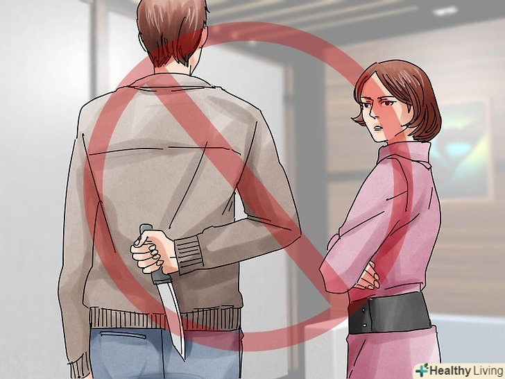 Утримайтеся від помсти.можливо, це саме те, чого вона від вас домагається. У деяких насильницьких відносинах жінка-агресор намагається підштовхнути свого партнера до нестриманої реакції або помсти. Залежно від місцевих законів ця дія може закінчитися тим, що ви опинитеся у в'язниці.[3]- Фіксувати дії і не реагувати на насильство набагато безпечніше для вас в довгостроковій перспективі, яким би великим не було бажання помститися.