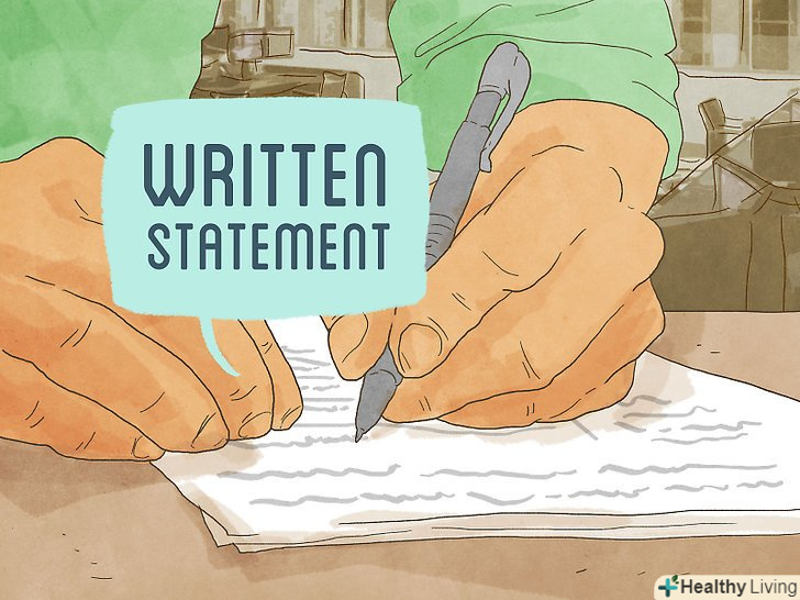 Перегляньте свої письмові свідчення. якщо ви дали письмове свідчення поліції, зустрілися з прокурором, який веде справу, або сказали те, що було збережено в письмовій формі (або записано на диктофон), попросіть копії і ознайомтеся з ними. Згодом ви можете забути деякі деталі справи, а це допоможе вам освіжити пам'ять. [8][9]- Ви також можете обрізати, змінити або «опустити» певні моменти або пункти при свідоцтві. Опустити-значить не вдаватися в деталі, якщо це не буде потрібно згодом.[10] наприклад, якщо ви думаєте, що частина ваших свідчень не має відношення до справи – наприклад, анекдот в середині бесіди, свідком якої Ви були – ви можете опустити його.