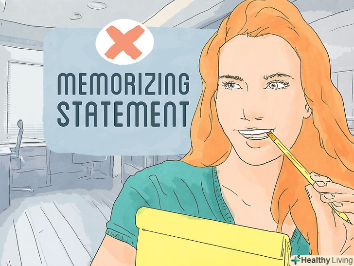 - Намагання запам'ятати формулювання напам'ять в процесі дачі показань також може ускладнити ваше завдання, якщо ви хочете виглядати впевнено. Може здатися, що ви «складаєте» свої свідчення або збиваєтеся.[15]
