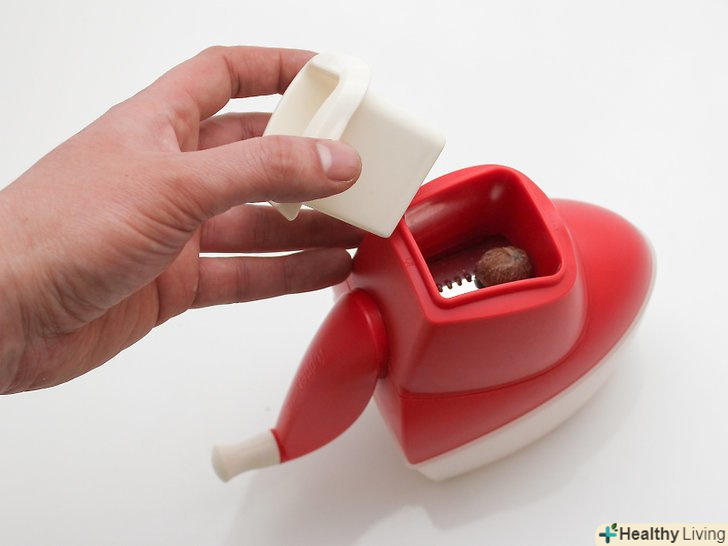 Відкрийте млин для горіхів.завантажте відсік приблизно на дві третини насінням мускатного горіха. Закрийте верх.