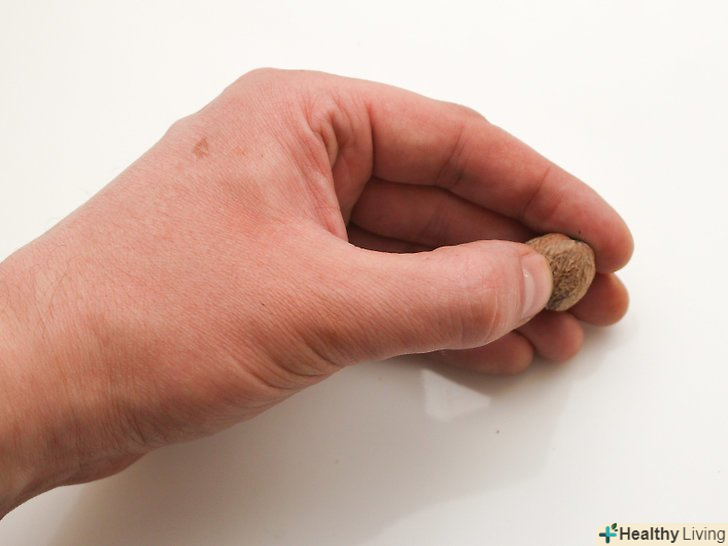 Візьміться за кінчик насіння мускатного горіха великим і вказівним пальцями.найкраще, спробувати тримати пальці подалі від терки, наскільки це можливо.